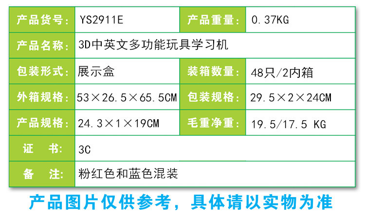 YS2911E 3D中英文多功能玩具学习机