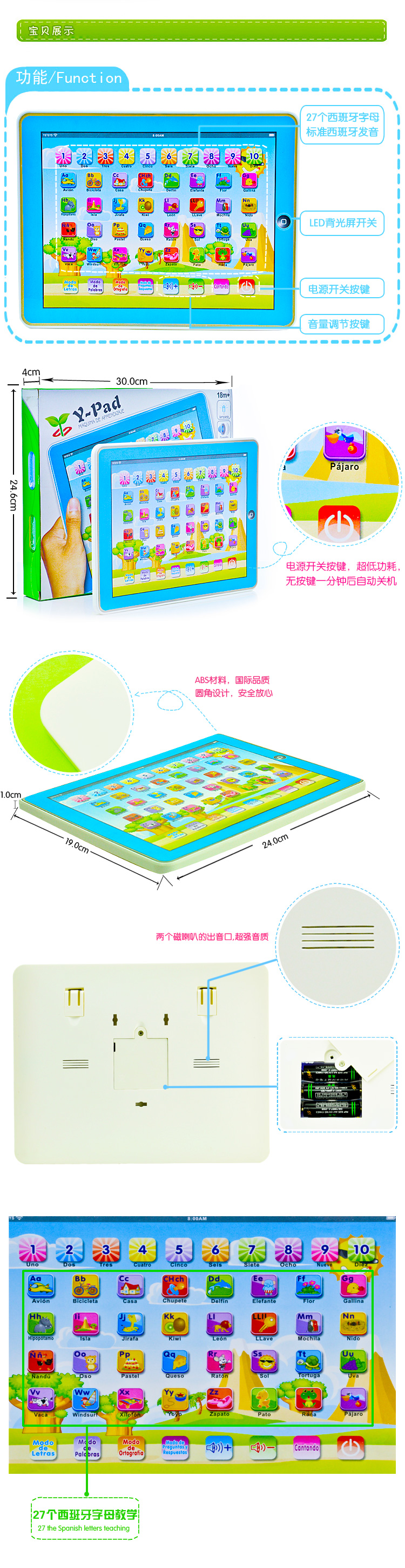 YS2911N 西班牙文ABC教学玩具学习机