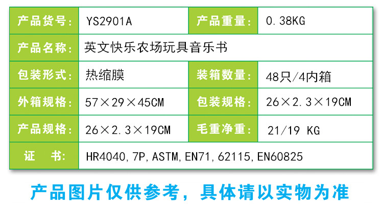 YS2901A 英文快乐农场玩具音乐书