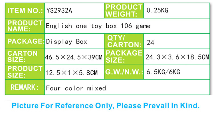 YS2932A 英文盒106合一玩具游戏机